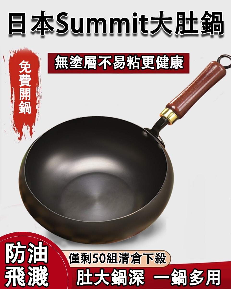 20分鐘前日本Summit鍋具超值入手。僅剩50組限時清倉,一鍋多用輕鬆駕馭百味,日本原礦精鐵大肚鍋,無塗層物理不沾黏更安心 - 【僅限今日!】Summit炒鍋28cm1件(送鍋蓋+鐵鏟)-NT$ 1480